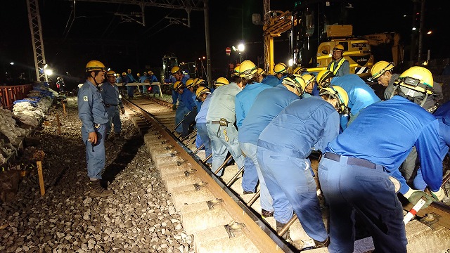 軌道管理の検査結果に基づいて、線路の狂いを整正したり、線路材料の交換を行ったりするのが軌道工事です。